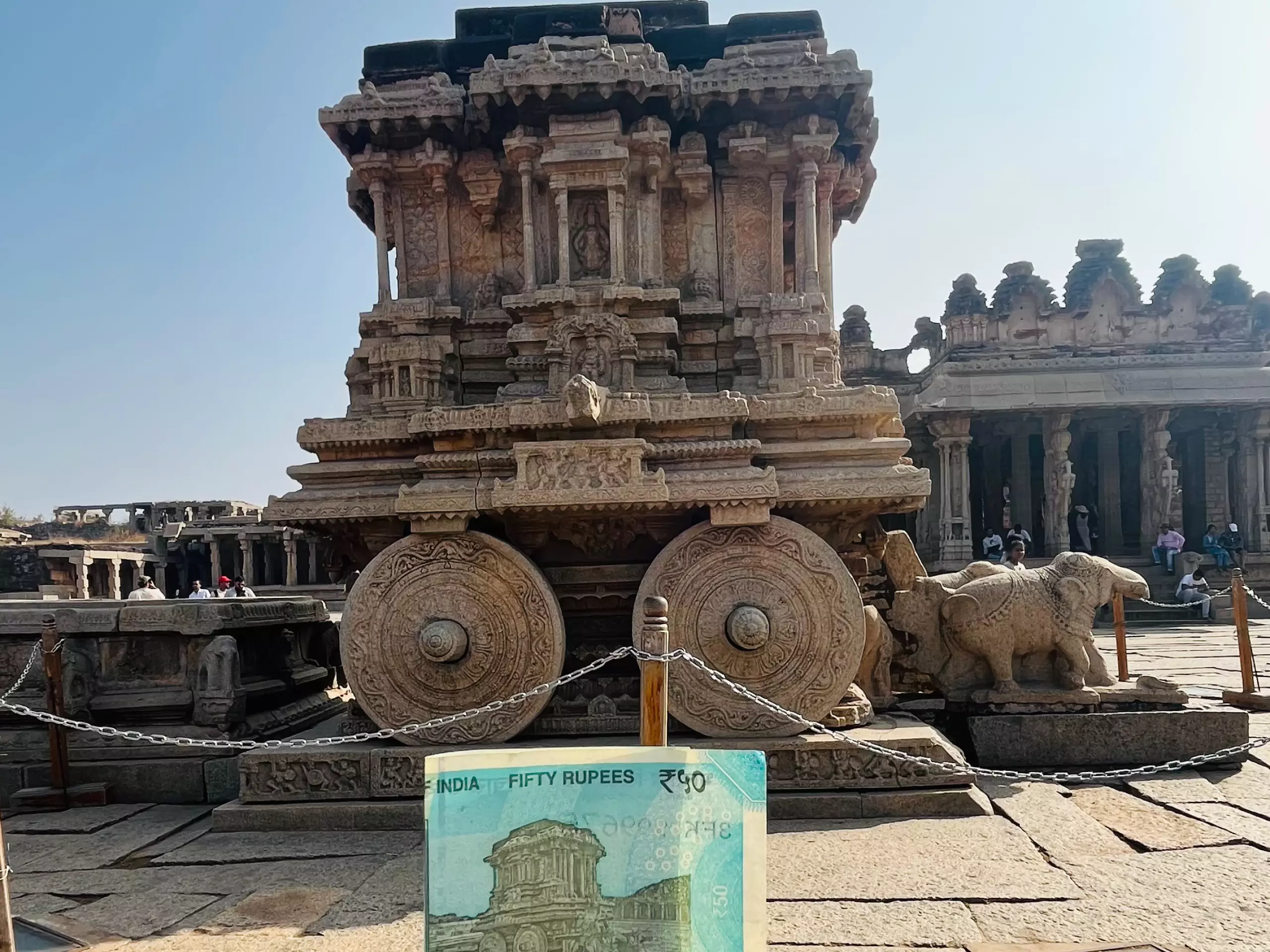 സ്റ്റോണ് ചാരിയറ്റ്, വിജയ വിത്തല രാജ്യത്തിന്റെ സാമ്പത്തിക മേഖലയിലെ ഒരു പ്രധാനിയാണ്. പുതിയ 50 രൂപ നോട്ടില് ഹംപിയെ പ്രതിനിധീകരിക്കുന്നത് ഈ സ്റ്റോണ് ചാരിയറ്റാണ്.