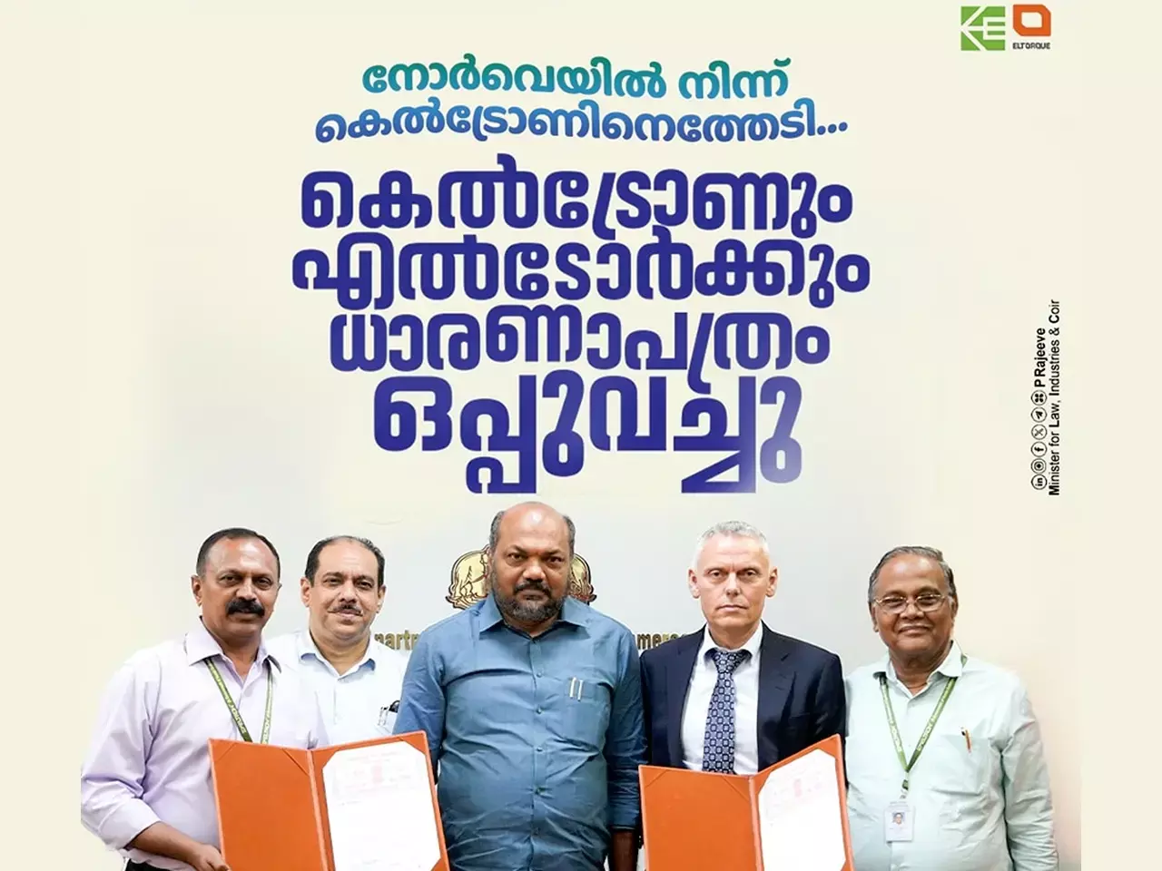 നോർവെ ആസ്ഥാനമായി പ്രവർത്തിക്കുന്ന ഇലക്ട്രോണിക്സ് ആന്റ് ഇലക്ട്രിക്കൽ മേഖലയിലെ പ്രമുഖ സ്ഥാപനമായ എൽടോർക്ക് കെൽട്രോണുമായി കരാർ ഒപ്പിട്ടു. കൺട്രോൾ ആൻഡ് ഇൻസ്ട്രുമെന്റേഷൻ മേഖലയിൽ ഇലക്ട്രിക്, ഹൈഡ്രോളിക്, ഇലക്ട്രോ-ഹൈഡ്രോളിക് ആക്ചുവേറ്ററുകളുടെ രൂപകൽപ്പനയ്ക്കും നിർമ്മാണത്തിനുമായി സംയുക്തമായ പ്രവർത്തനങ്ങൾ നടത്തുന്നതിനാണ് കരാർ ഒപ്പിട്ടിരിക്കുന്നത്.വ്യവസായ മന്ത്രി പി രാജീവിന്റെ സാന്നിധ്യത്തിൽ കെൽട്രോൺ മാനേജിംഗ് ഡയറക്ടർ ശ്രീ. ശ്രീകുമാർ നായരും എൽടോർക്ക് ചീഫ് എക്സിക്യൂട്ടീവ് ഓഫീസർ ശ്രീ. ഹെർമൻ ക്ലങ്സോയറും തമ്മിൽ സഹകരണപത്രം കൈമാറി. കപ്പലുകൾക്കുൾപ്പെടെ ആക്ചേറ്ററുകളും കൺട്രോൾ സിസ്റ്റവും നിർമ്മിച്ചു നൽകുന്ന സ്ഥാപനമാണ് എൽടോർക്ക്.