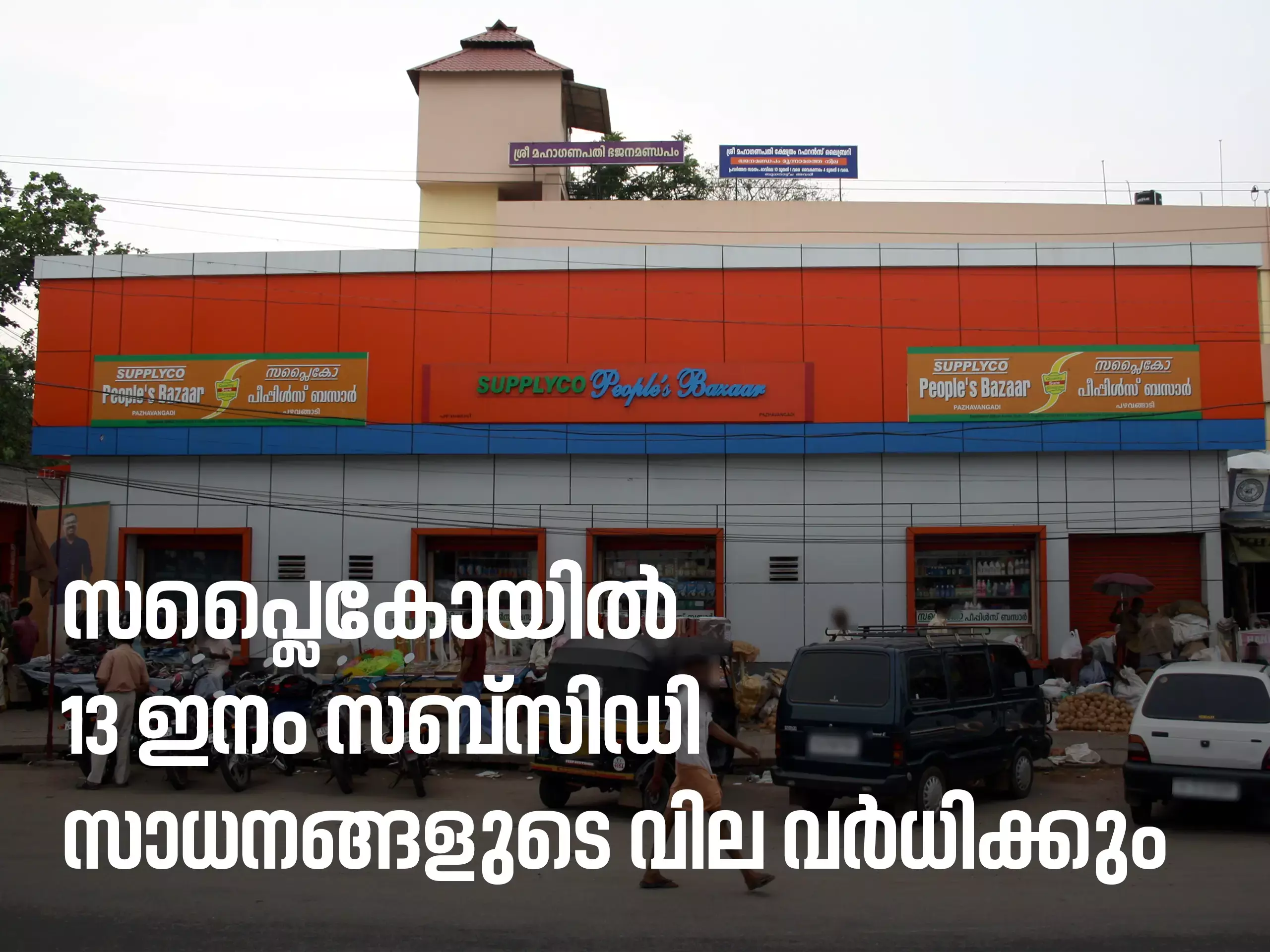 സംസ്ഥാനത്ത് സപ്ലൈകോ വഴി വിതരണം ചെയ്യുന്ന 13 ഇനം സബ്സിഡി സാധനങ്ങളുടെ വില വര്ധിക്കും.
