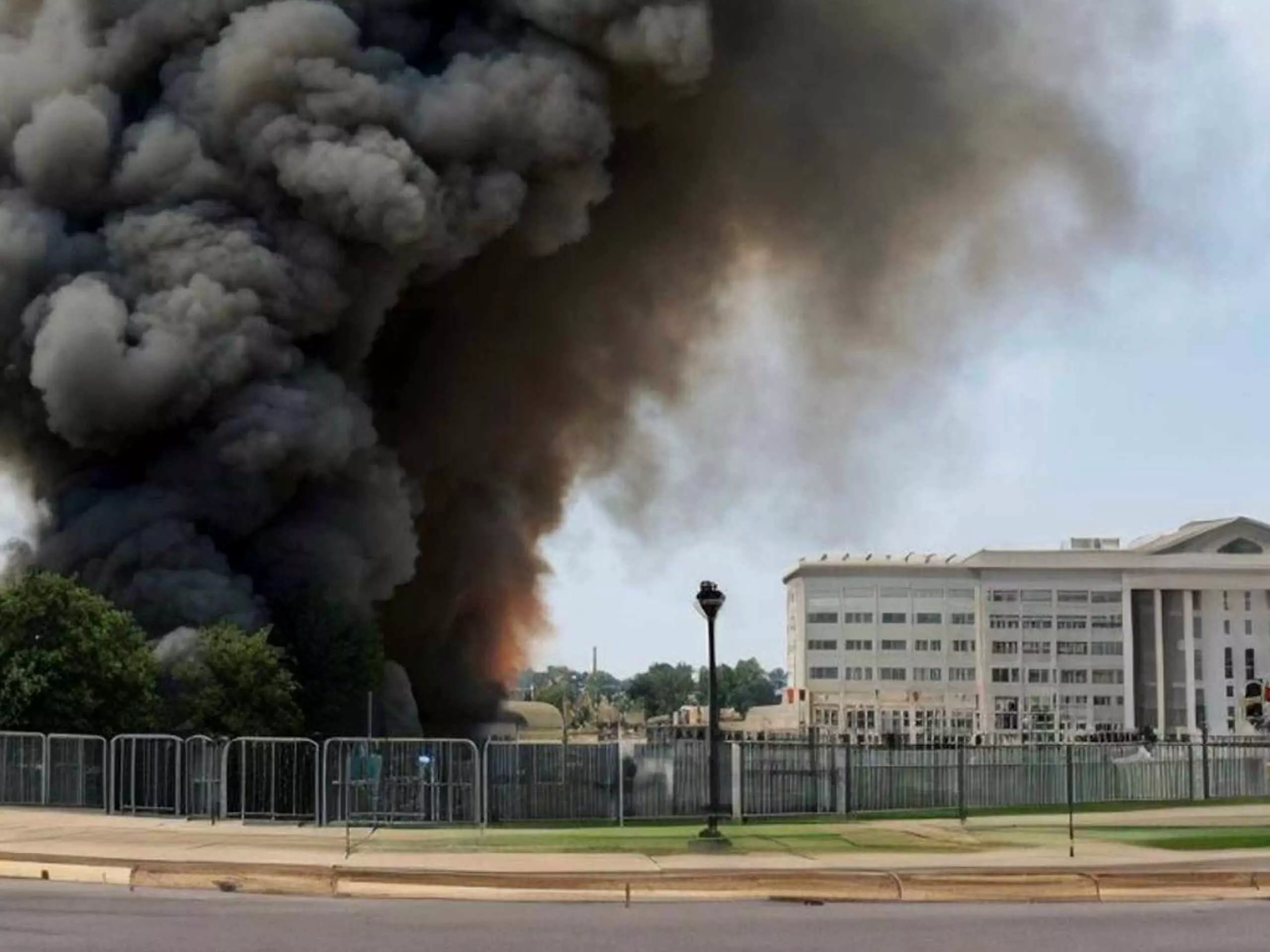 - യുഎസ് പ്രതിരോധ കെട്ടിടത്തിന് പുറത്ത് കറുത്ത പുക ഉയരുന്നതായിരുന്നു ഫോട്ടോ