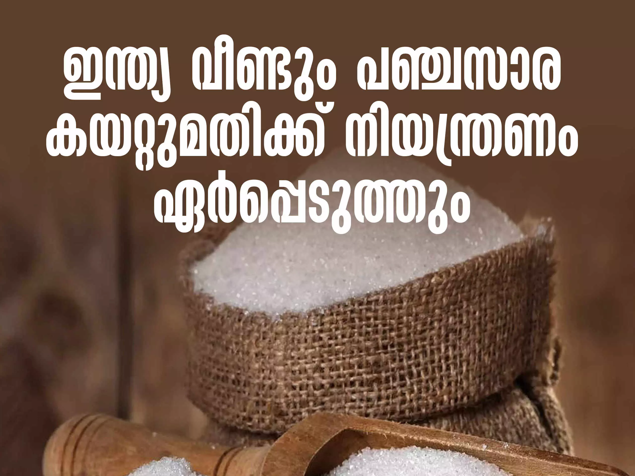 നീണ്ട ഇടവേളയ്ക്ക് ശേഷം ഇന്ത്യ വീണ്ടും പഞ്ചസാര കയറ്റുമതിക്ക് നിയന്ത്രണം ഏർപ്പെടുത്തിയേക്കും. എട്ട് ലക്ഷം ടണ്ണായി കയറ്റുമതി നിയന്ത്രിക്കാനാണ് തീരുമാനം. അടുത്ത മാസം സർക്കാരിൽ നിന്ന് ഉത്തരവ് വന്നേക്കുമെന്നാണ് പ്രതീക്ഷ