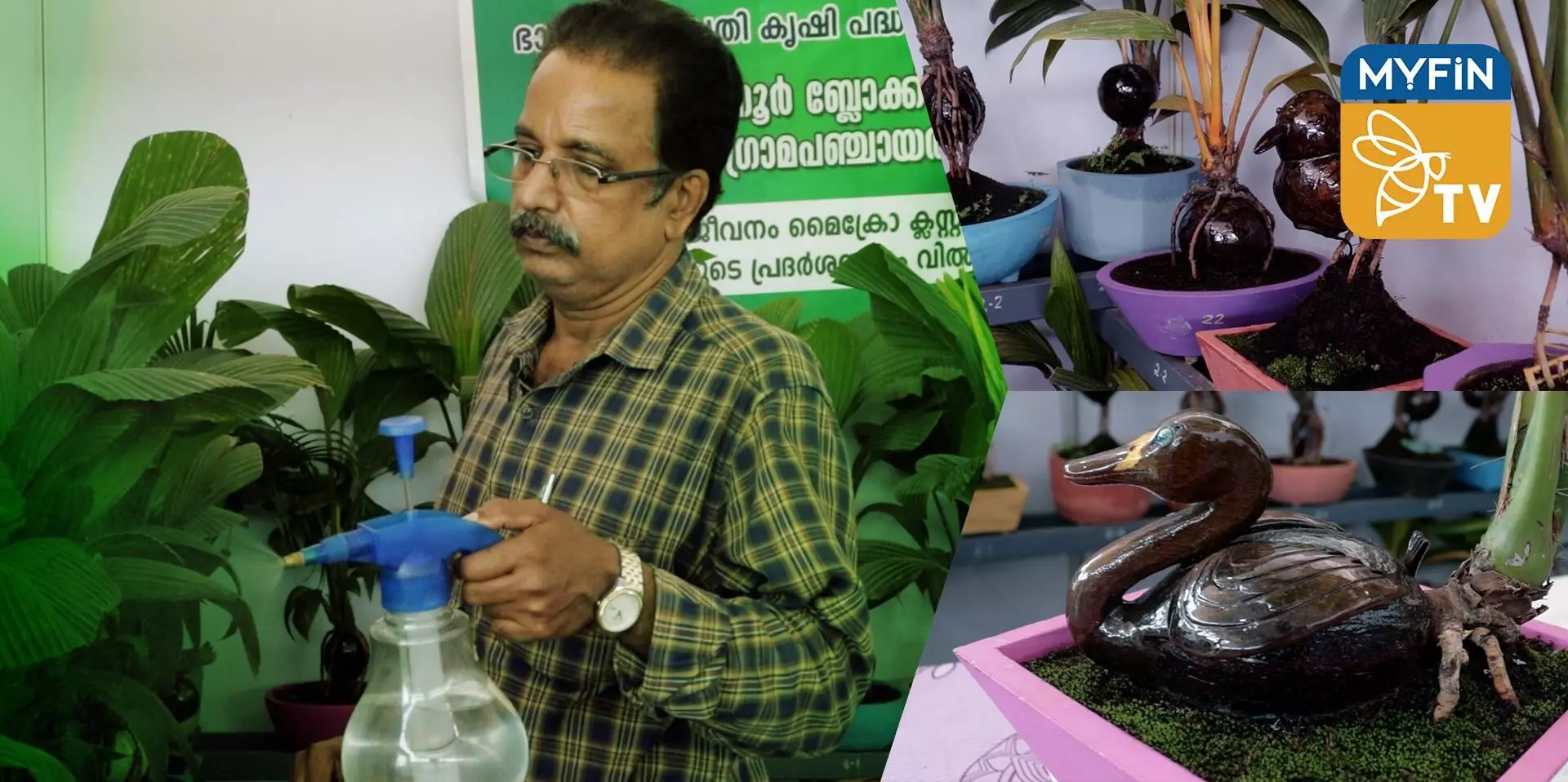 കേരളത്തിന്റെ കൽപ വൃക്ഷമായ തെങ്ങിൽ ബോൺസായ് അത്ഭുതങ്ങൾ തീർത്തിരിക്കുകയാണ് കോഴിക്കോട് കാക്കൂർ സ്വദേശിയായ സുധാകരൻ. കോഴിക്കോട് നടക്കുന്ന വ്യവസായ പ്രദർശനത്തിന്റെ മുഖ്യ ആകർഷണങ്ങളിൽ ഒന്നാണിത്.