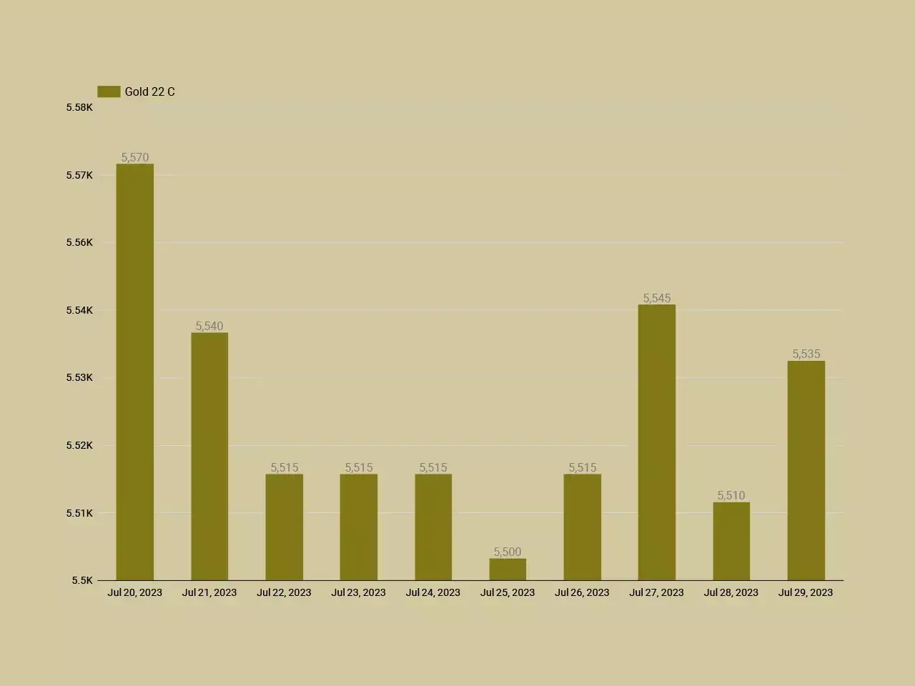 ഇന്ന് 1 ഡോളറിന് 82.26 രൂപ മൂല്യത്തിലാണ് ഇന്ത്യയിലെ വിനിമയം നടക്കുന്നത്. മാര്ച്ച് അവസാനം മുതല് മേയ് രണ്ടാം വാരം വരെയുള്ള കാലയളവില് സ്വര്ണം വലിയ കുതിപ്പിന്റെ പാതയിലായിരുന്നു. എന്നാല് തുടര്ന്നങ്ങോട്ട് വിലയില് തുടര്ച്ചയായ ചാഞ്ചാട്ടവും ക്രമേണയുള്ള ഇടിവും ഉണ്ടാകുകയായിരുന്നു. ജൂണില് വെറും 7 ദിവസങ്ങളില് മാത്രമാണ് സ്വര്ണ വിലയില് വര്ധന രേഖപ്പെടുത്തിയത്. ജൂലൈയില് പൊതുവേ ചാഞ്ചാട്ടമാണ് വിലയില് കണ്ടത്.