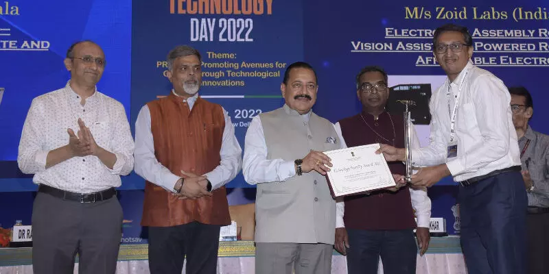 ന്യൂഡല്ഹിയിലെ അശോക ഹോട്ടലില് നടന്ന ചടങ്ങില് കേന്ദ്ര ശാസ്ത്ര സാങ്കേതിക വകുപ്പിന്റെ സ്വതന്ത്രചുമതലയുള്ള മന്ത്രി ജിതേന്ദ്രസിംഗില് നിന്നും സോയിഡ് ലാബ്സിന്റെ സഹസ്ഥാപകന് ഡോ. ഉണ്ണികൃഷ്ണന് കെ സി പുരസ്ക്കാരം ഏറ്റുവാങ്ങി. ചെലവുകുറഞ്ഞ ഇലക്ട്രോണിക് അസംബ്ലിയ്ക്കുള്ള ഡെസ്ക്ടോപ്പ് ബോട്ട് റോബോട്ടുകളെ വികസിപ്പിച്ചതിനാണ് ദേശീയ പുരസ്ക്കാരം സോയിഡ് ലാബ്സിനെ തേടിയെത്തിയത്. പ്ലേസര്ബോട്ട് എന്നാണ് ഇതിന്റെ പേര്.