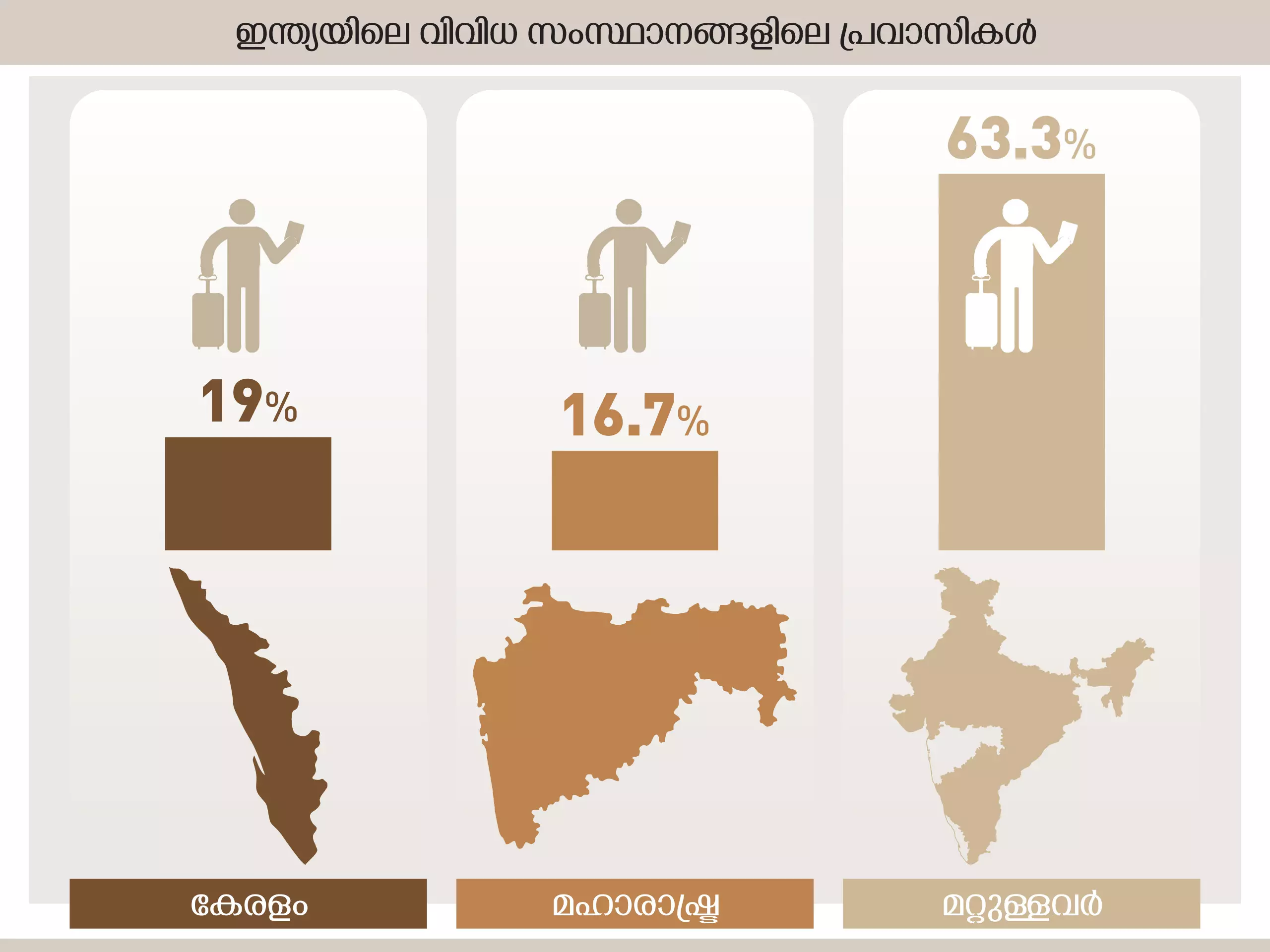 അന്തര്ദേശീയ തൊഴില് സംഘടന (ഐഎല്ഒ) യുടെ കണക്ക് അനുസരിച്ച് 13.4 ദശലക്ഷം ഇന്ത്യക്കാരാണ് വിദേശരാജ്യങ്ങളില് തൊഴില് ചെയ്യുന്നത്. പ്രവാസി തൊഴിലാളികളുടെ എണ്ണത്തില് ഇന്ത്യ ഒന്നാം സ്ഥാനത്താണ്. അതായത്, ലോകത്തുള്ള ആകെ പ്രവാസികളുടെ 22 ശതമാനവും ഇന്ത്യയില്നിന്നാണെന്ന് അര്ത്ഥം. ഇന്ത്യയില് തന്നെ ഏറ്റവും കൂടുതല് പ്രവാസികളുള്ളത് കേരളത്തില്നിന്നാണ്. ഇന്ത്യയില്നിന്നുള്ള ആകെ പ്രവാസികളുടെ 19 ശതമാനം കേരളത്തില്നിന്നുള്ളവരാണ്. 16.7 ശതമാനവുമായി മഹാരാഷ്ട്രയാണ് രണ്ടാമതുള്ളത്. ഇന്ത്യയില്നിന്നുള്ള പ്രവാസികളില് 64 ശതമാവും ജിസിസി രാജ്യങ്ങളിലാണ് ജോലി ചെയ്യുന്നത്. അതില് തന്നെ യുഎഇയാണ് ഒന്നാം സ്ഥാനത്ത്. സഊദി അറേബ്യ, കുവൈറ്റ് എന്നിവ യഥാക്രമം ഇന്ത്യന് പ്രവാസികളില് രണ്ടും മൂന്നും സ്ഥാനത്തുള്ളത്. 64 ശതമാനം കഴിഞ്ഞ് ബാക്കിയുള്ള പ്രവാസികള് മാത്രമാണ് അമേരിക്ക, കാനഡ, ഓസ്ട്രേലിയ തുടങ്ങിയ മറ്റ് രാജ്യങ്ങളിലായി ഉള്ളത്.