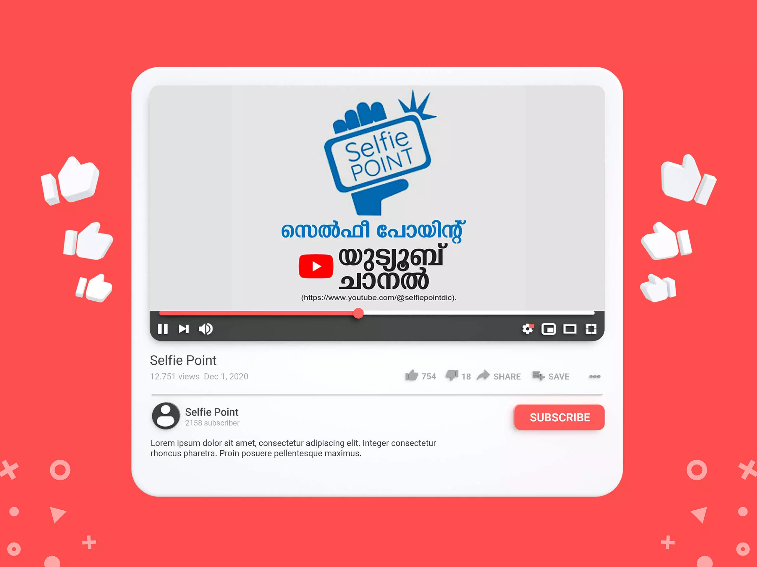 - വ്യവസായ വകുപ്പാണ് 'സെല്ഫീ പോയിന്റ്' യുട്യൂബ് ചാനന് ആരംഭിച്ചത്