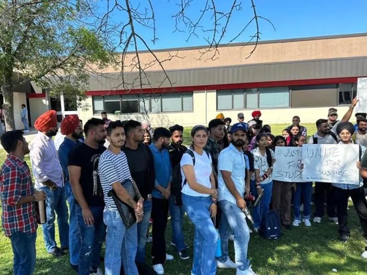 കാനഡയില് പ്രതിഷേധിച്ച വിദ്യാര്ത്ഥികള് കോളേജ് ഗ്രൗണ്ടിന് സമീപത്തെ ടെന്റിലാണ് താമസിച്ചിരുന്നത്. സെപ്റ്റംബറില് ആരംഭിക്കുന്ന പുതിയ അധ്യയന വര്ഷത്തിന്റെ തുടക്കത്തില് 3,500 വിദേശ വിദ്യാര്ത്ഥികള് കാനഡയില് എത്തി. ഉയര്ന്ന വാടകയും നോര്ത്ത് ബേയുടെ ചെറിയ വലിപ്പവും കാരണം വിദ്യാര്ത്ഥികള്ക്ക് മിതമായ നിരക്കില് താമസസ്ഥലം കണ്ടെത്തുക ബുദ്ധിമുട്ടായിത്തീർന്നു. ഇതേത്തുടർന്നാണ് പ്രതിഷേധമുയർന്നത്.