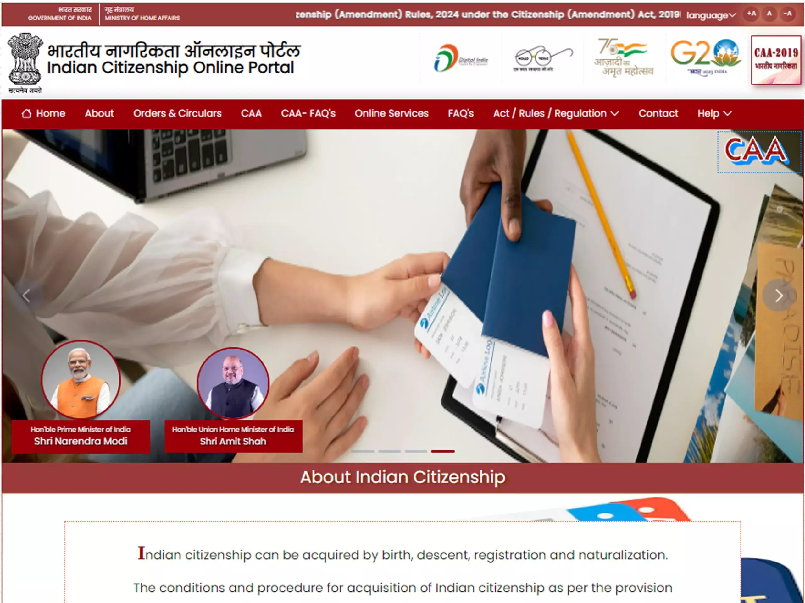 പൗരത്വ നിയമ ഭേദഗതി അനുസരിച്ച് പൗരത്വത്തിന് അപേക്ഷിക്കാൻ വെബ് സൈറ്റ് സജ്ജമായി.