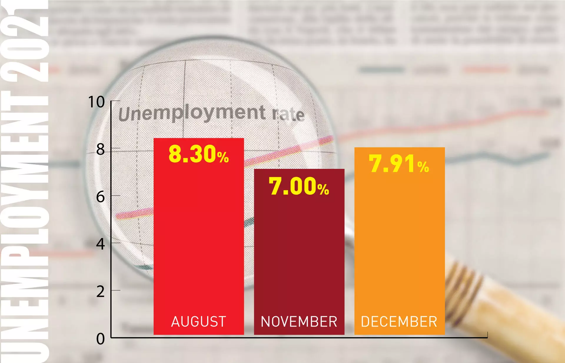 സെന്റര് ഫോര് മോണിറ്ററിംഗ് ഇന്ത്യന് ഇക്കണോമി (സി എം ഐ ഇ) യുടെ കണക്കുകള് പ്രകാരം രാജ്യത്തെ തൊഴിലില്ലായ്മ നിരക്ക് 2021 ഡിസംബറില് നാല് മാസത്തെ ഏറ്റവും ഉയര്ന്ന നിരക്കായ 7.91 ശതമാനത്തിലെത്തി. നവംബറില് തൊഴിലില്ലായ്മ നിരക്ക് ഏഴ് ശതമാനമായിരുന്നു. സി എം ഐ ഇ ഡാറ്റ അനുസരിച്ച് ആഗസ്റ്റ് വരെയുള്ള ഏറ്റവും ഉയര്ന്ന നിരക്ക് 8.3 ശതമാനമായിരുന്നു.