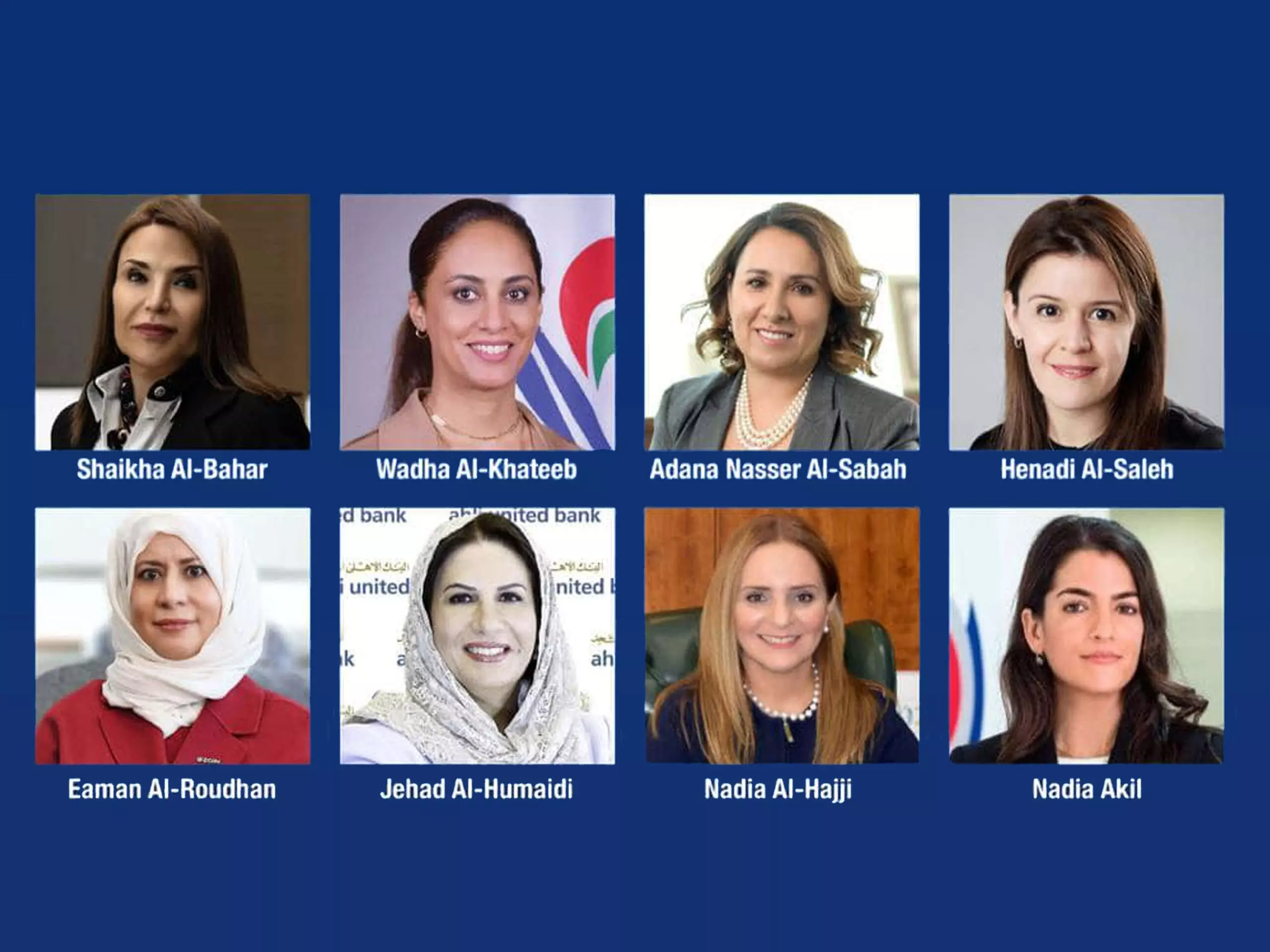അഹ്ലി യുണൈറ്റഡ് ബാങ്ക് സിഇഒ ജഹാദ് അല് ഹുമൈദി 34, പെട്രോ കെമിക്കല് ഇന്ഡ്രസ്ട്രീസ് കമ്പനി സിഇഒ നാദിഅ അല് ഹജ്ജി 35 എന്നിങ്ങനെ സ്ഥാനങ്ങളാണ് സ്വന്തമാക്കിയിരിക്കുന്നത്.