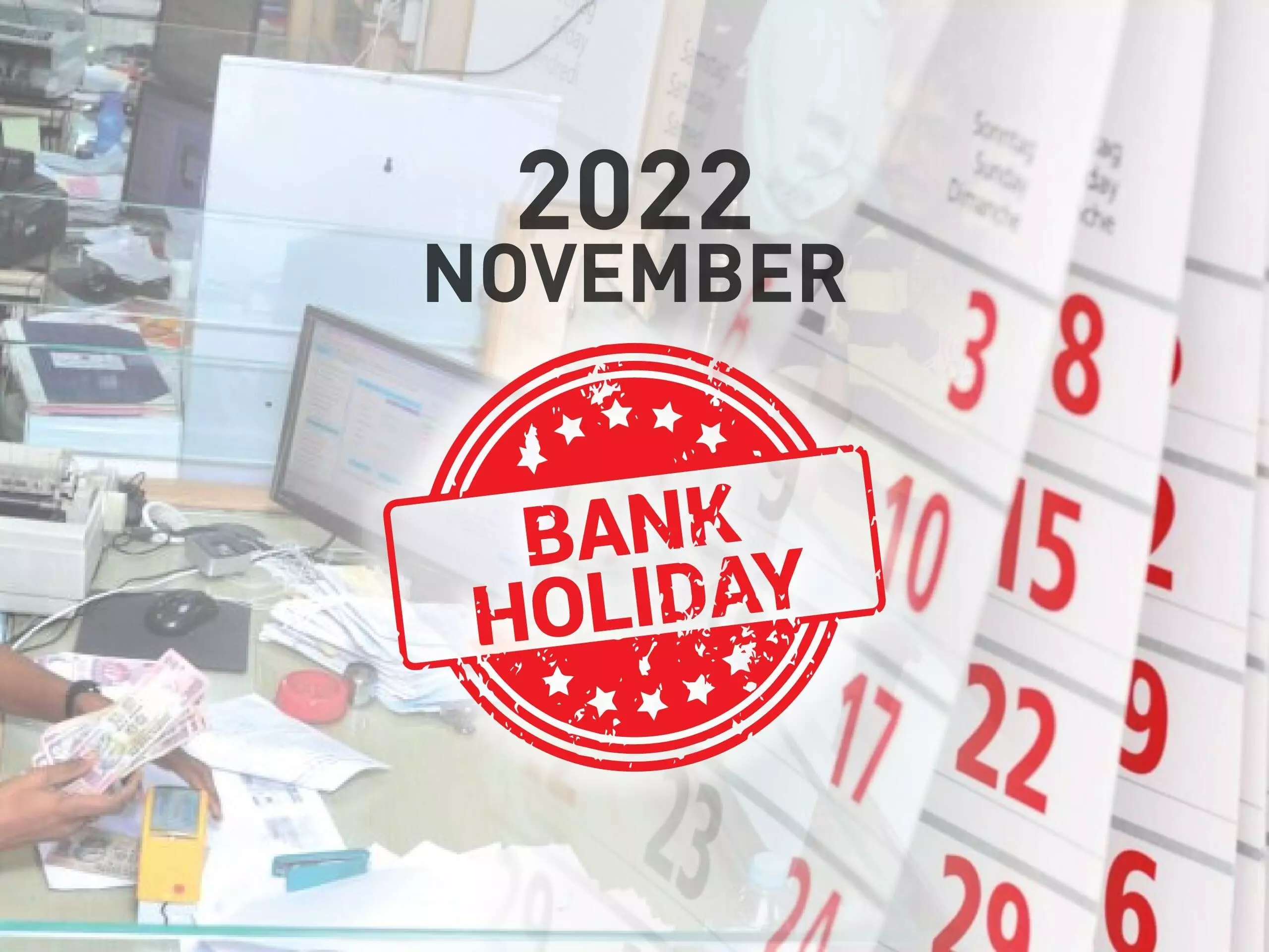 ആര്ബിഐയുടെ ബാങ്ക് അവധി ദിവസങ്ങളുടെ പട്ടിക പ്രകാരം നവംബര് മാസത്തില് 10 ദിവസമാണ് ബാങ്കുകള്ക്ക് അവധി. രണ്ടാമത്തെയും, നാലാമത്തെയും ശനിയാഴ്ച്ചകള്, ഞായറാഴ്ച്ച എന്നിവയുള്പ്പെടെയാണ് 10 ദിവസം അവധി. ഈ ദിവസങ്ങളിലും ഇന്റര്നെറ്റ് ബാങ്കിംഗ് സേവനങ്ങള്, എടിഎം സേവനങ്ങള് എന്നിവ ലഭ്യമാകും.